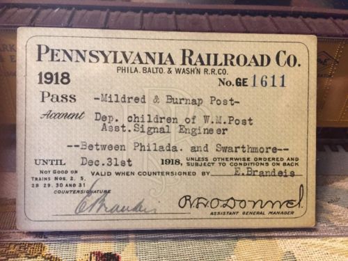 Title (ebay affiliate link): 1918 Pennsylvania Railroad Co Pass Philadelphia Baltimore & Washington RR Mint!