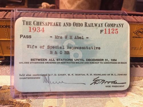Title (ebay affiliate link): 1934 The Chesapeake and Ohio Railway - Great C&O Pass with nice color.