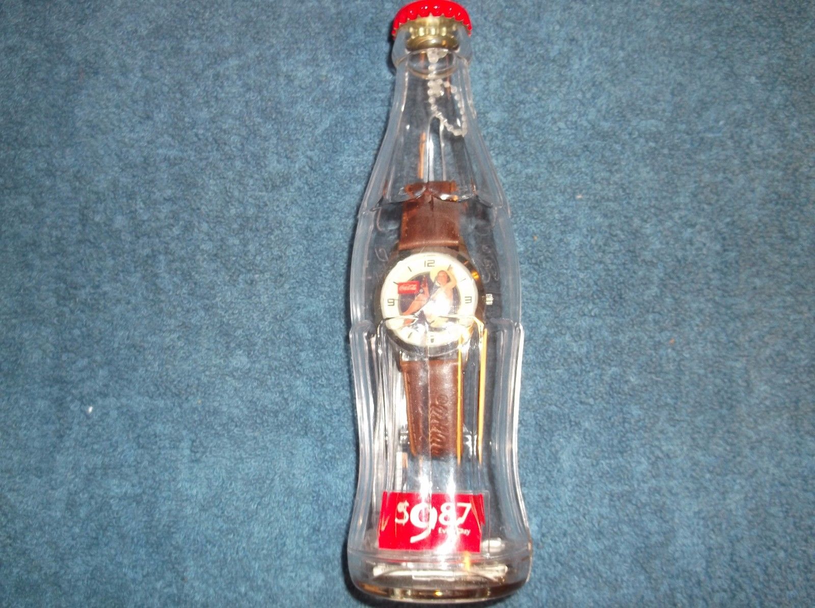 Title (ebay affiliate link): Coca Cola Watch With Calendar Lady In Swimsuit in Bottle Bank - 2002