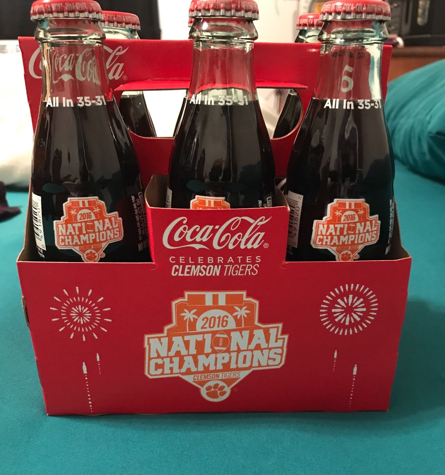 Title (ebay affiliate link): New 6 pack 2016 Clemson National Championship 8 oz. Coke Coca Cola Bottles