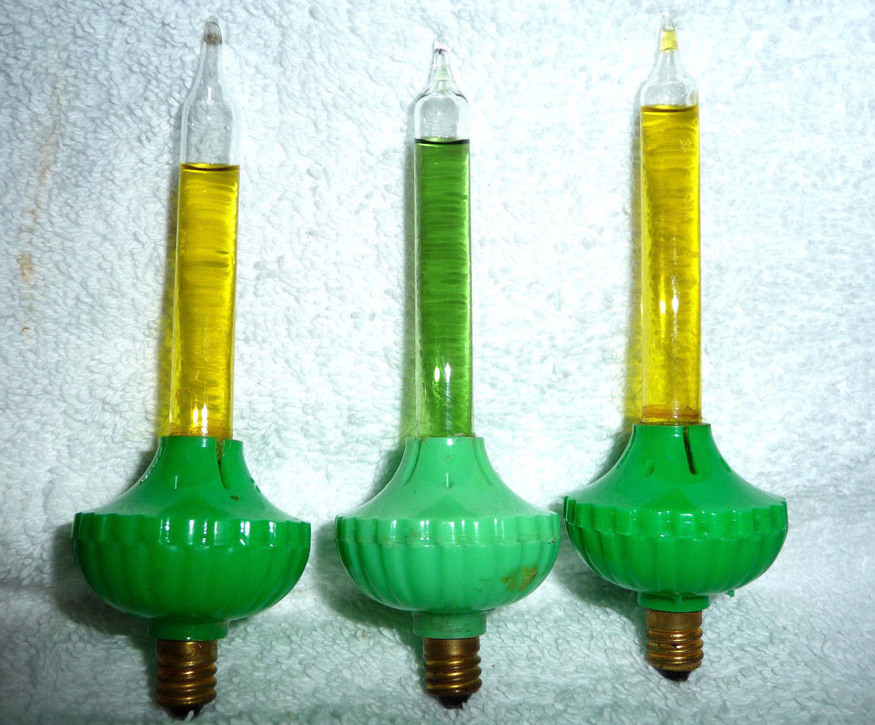 Title (ebay affiliate link): VINTAGE BUBBLE LIGHTS C6 ROYALS SOLID COLOR BASES GREENS AND RARE GREEN TUBE