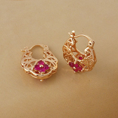 Very Antique Style 14K Yellow Gold red CZ Earrings