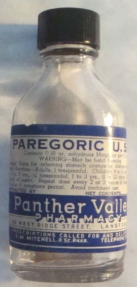 Title (ebay affiliate link): Antique Empty bottle Paragoric U.S.P. Panther Valley Pharmacy Lansford Pa