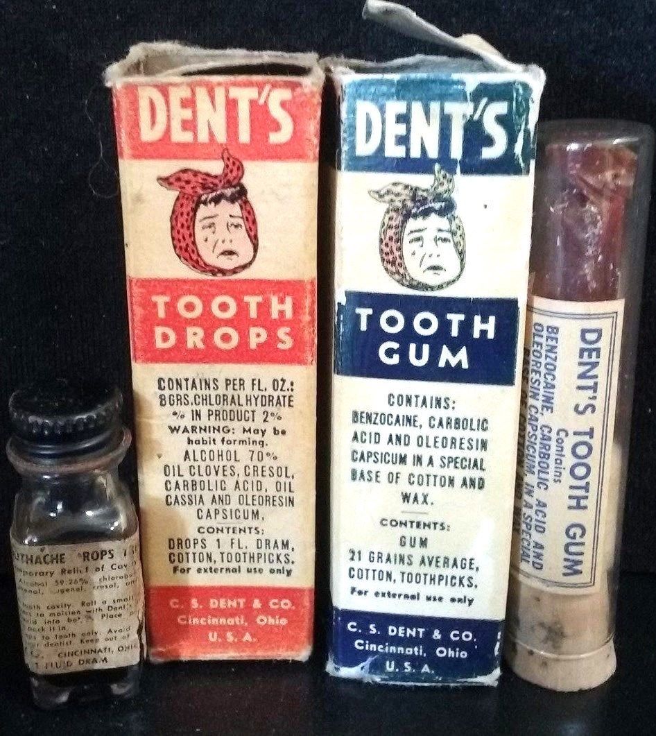 Title (ebay affiliate link): ANTIQUE VTG DENTAL BOTTLES/BOXES LOT OF 2:DENT''S TOOTH DROPS & TOOTH GUM NOT TIN