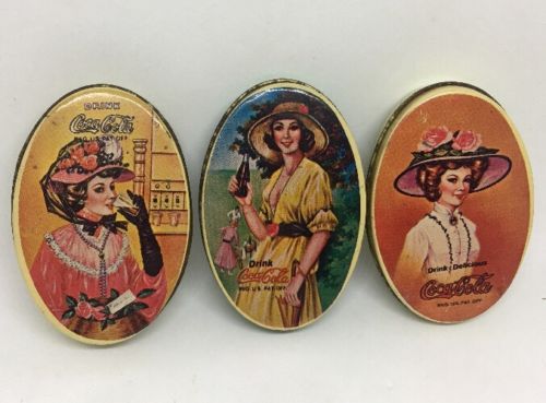 Title (ebay affiliate link): Lot of 3 Vintage Collectible Coca-Cola Tin Sewing Kit Antique H.K. Coke Lady