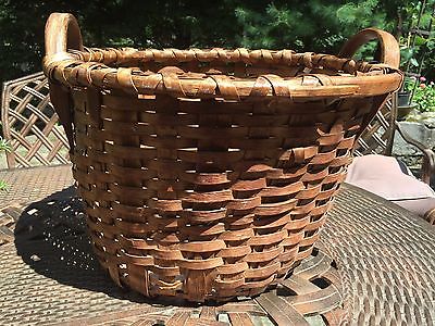 ANTIQUE SPLINT BUSHEL BASKET FROM MAINE