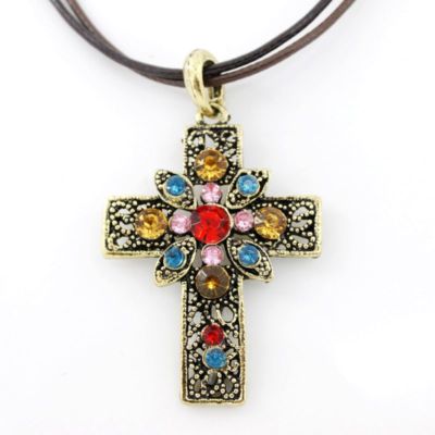 Title (ebay affiliate link): VINTAGE Retro Antique Crystal CROSS Pendant NECKLACE