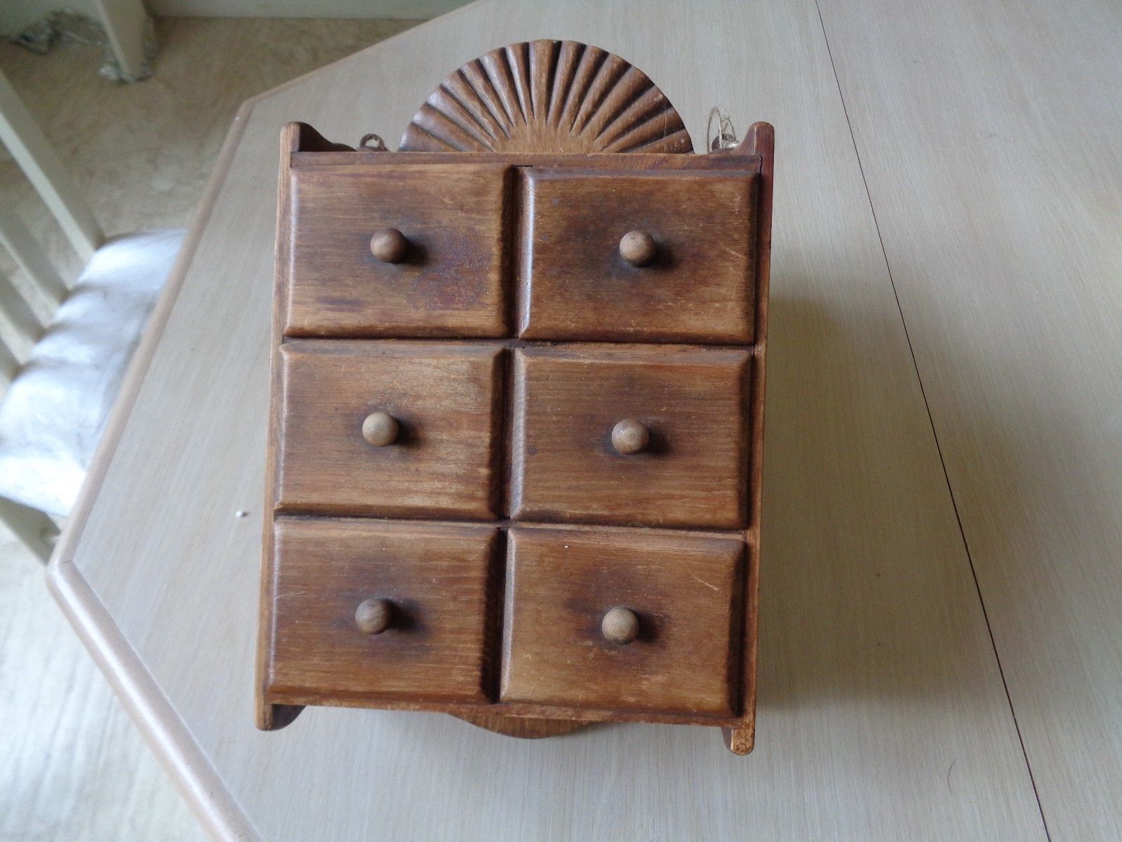 Title (ebay affiliate link): Antique wall mounted spice cabinet / chest 6 drawers , Made of pine , Nice