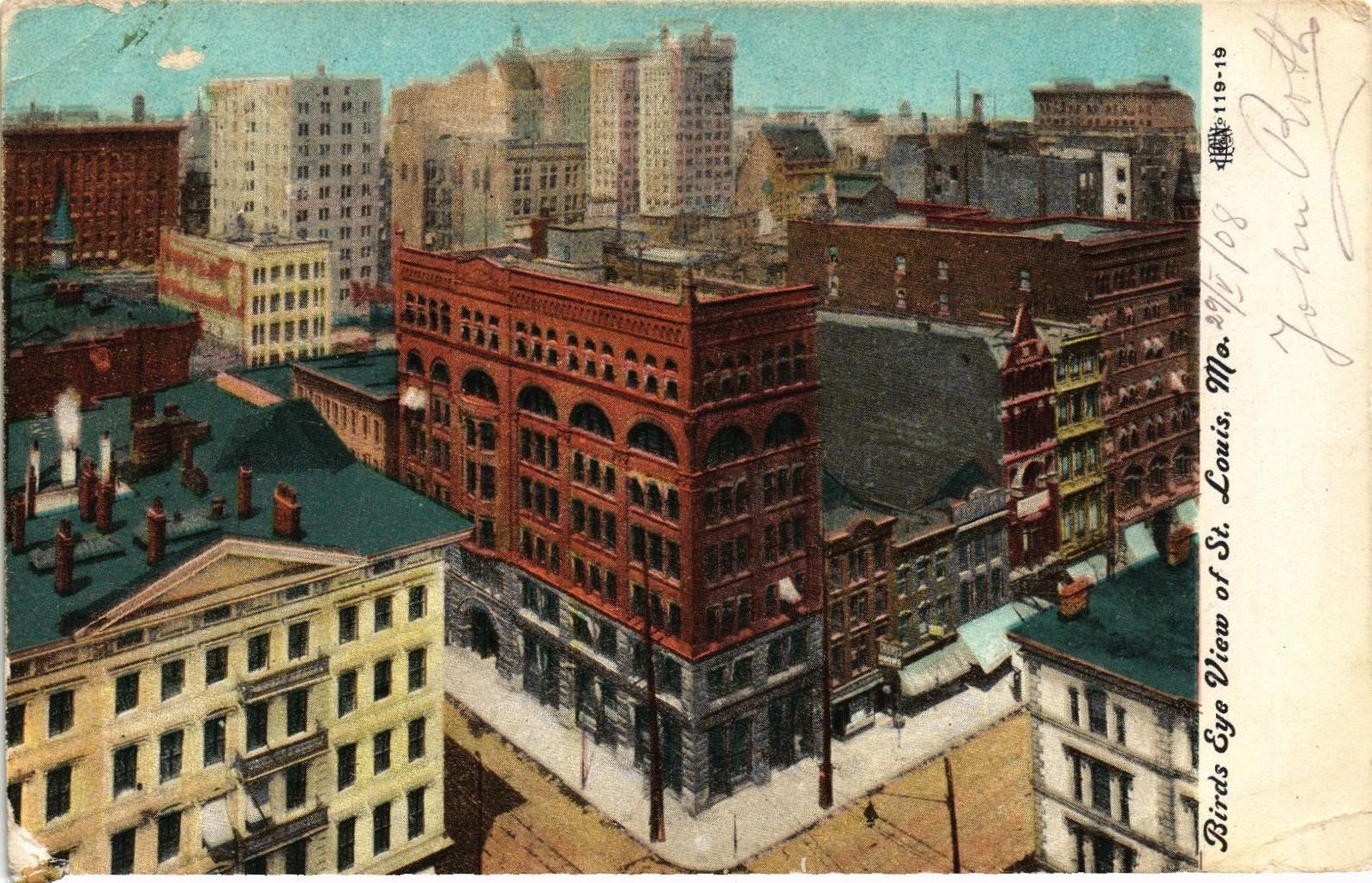 DR JIM STAMPS US POSTCARD BIRDS EYE VIEW OF SAINT LOUIS MISSOURI 1908