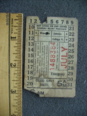 NEW YORK & QUEENS TRANSIT CORP 1924 TROLLEY TICKET