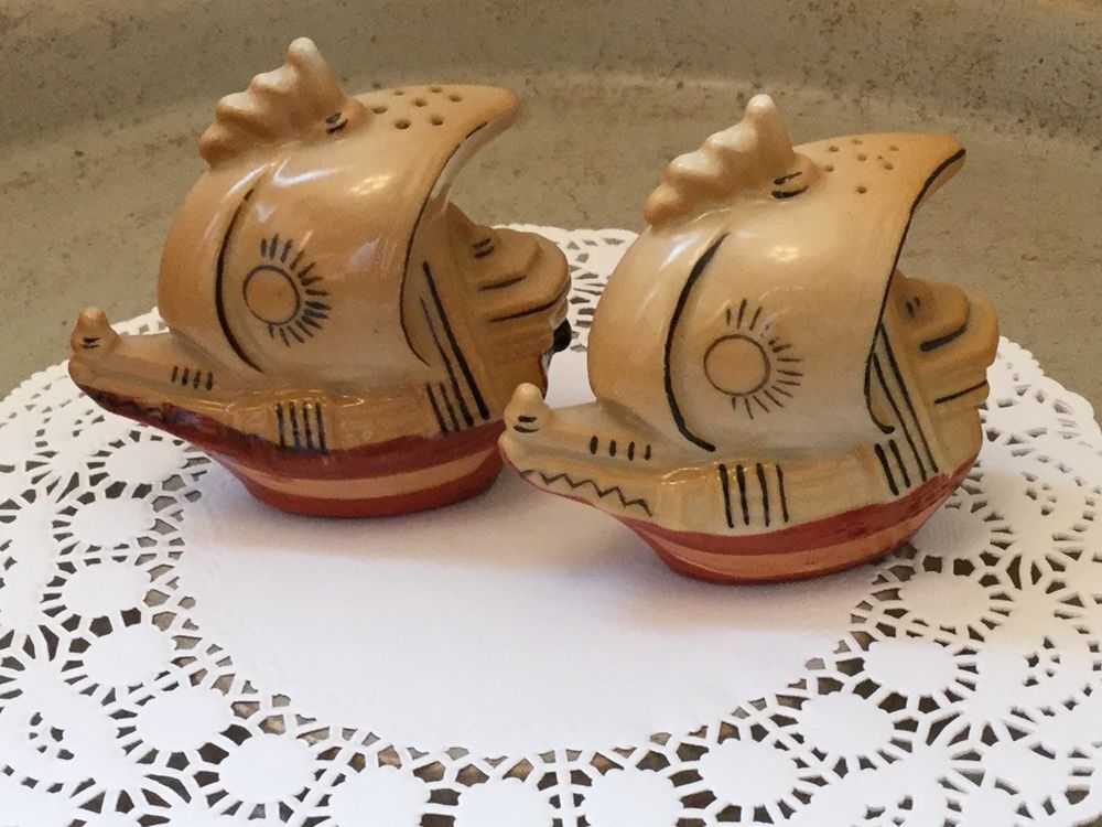 Vintage Japan Salt and Pepper Shakers. Sailing ships.