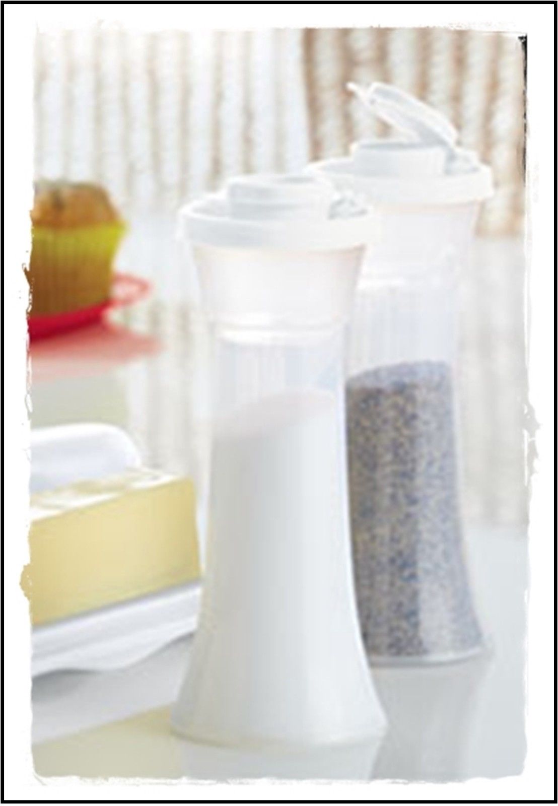 TUPPERWARE TUPPER MINI 4" HOUR GLASS SALT & PEPPER SHAKER SET SNOW WHITE SEALS