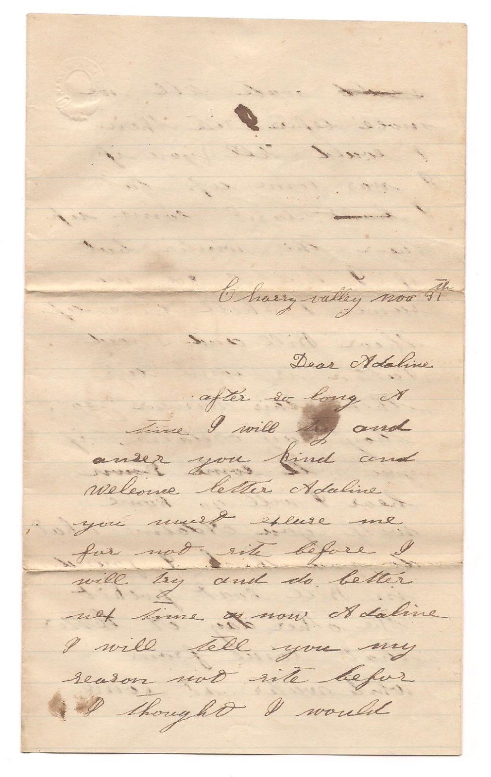 CHERRY VALLEY ILLINOIS LETTER CIVIL WAR ERA