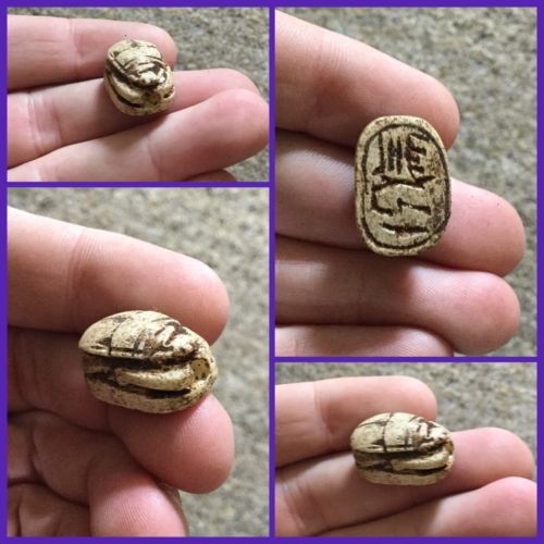 Title (ebay affiliate link): ANCIENT EGYPTIAN FAIENCE SCARAB BEETLE WITH HIEROGLYPHS, MIDDLE KINGDOM.
