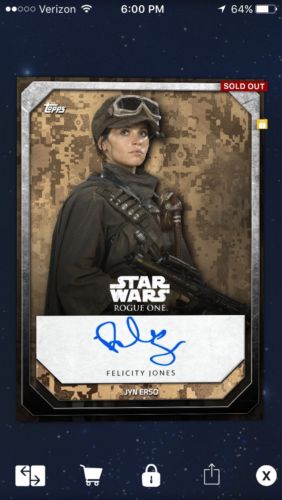 Title (ebay affiliate link): Topps Star Wars Card Trader Jyn Erso Digital Autograph Insert Card