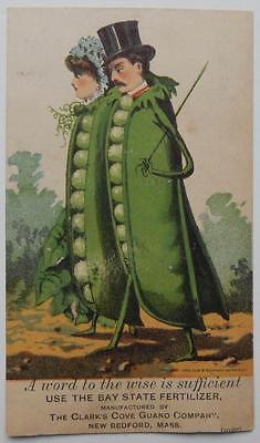 1800''s Victorian Trade Card Pea Pod Man & Woman New Bedford MA Anthropomorphic