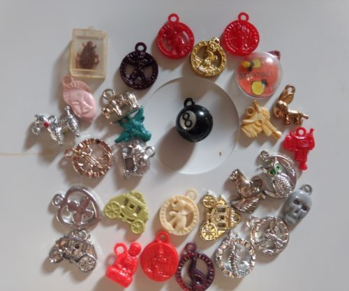 Title (ebay affiliate link): 29 Vintage Cracker Jack gum ball Charms Metallic Shiny Plastic Mixed Lot