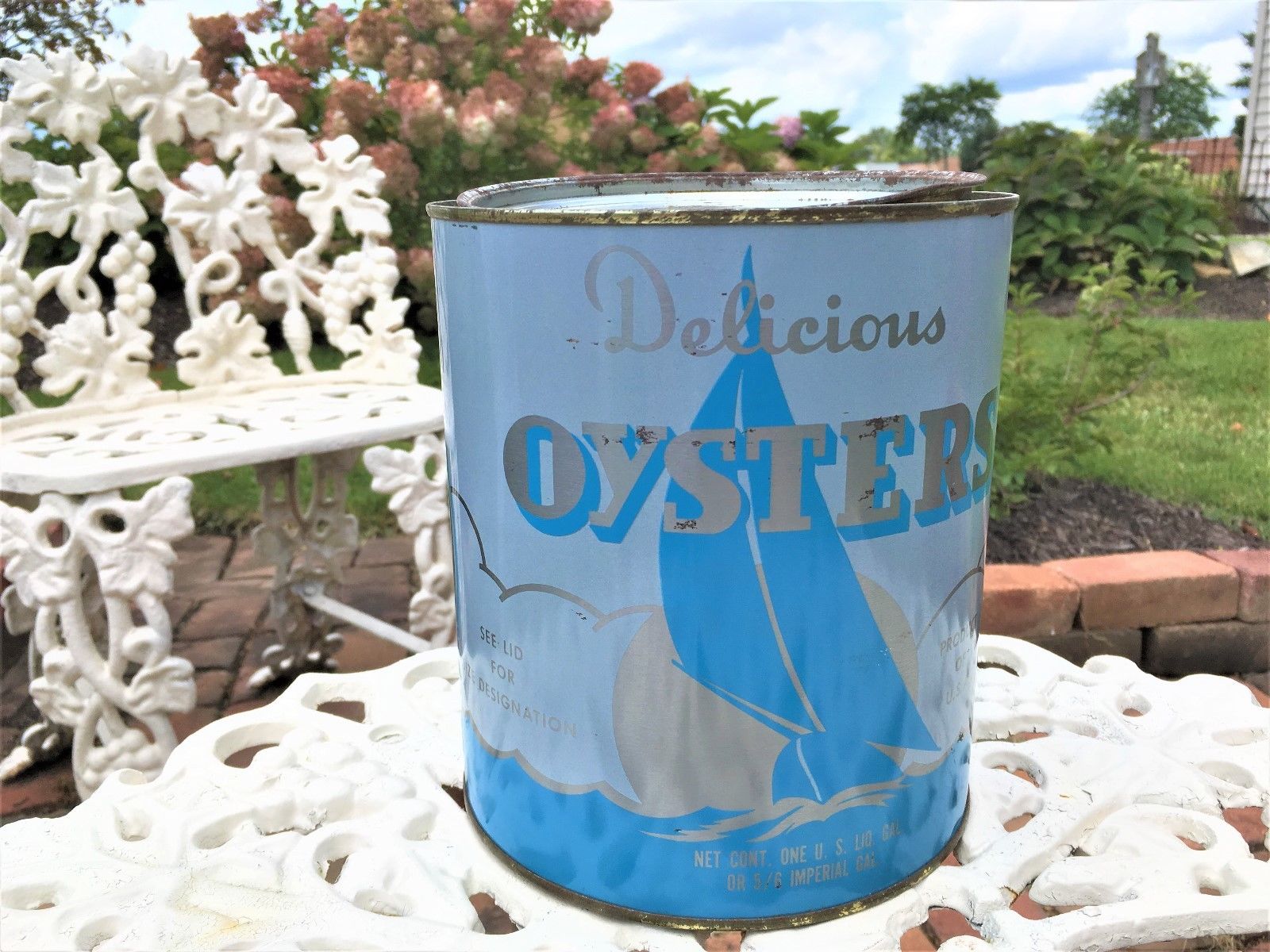 Title (ebay affiliate link): Vintage 1 Gal. Delicious Brand Oysters Tin Can Conner McGee Chincoteague Va. VA