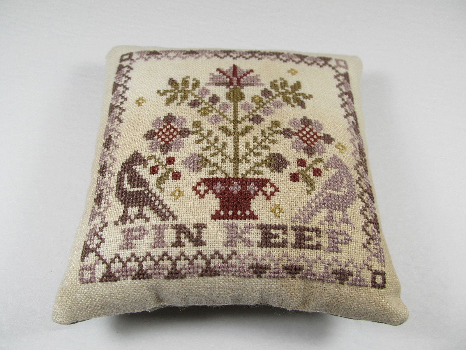 Completed Primitive Pincushion Pinkeep Bowl Filler Birds Handmade Cross Stitch