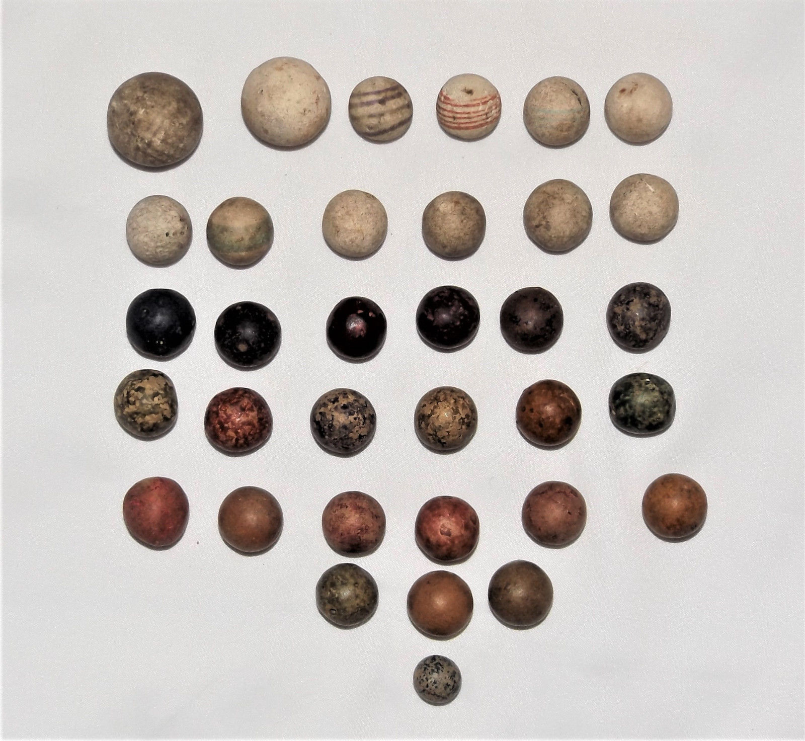 Title (ebay affiliate link): ANTIQUE HAND MADE CLAY Stripes Speckled VERY OLD LOT of 34 VTG PRIMITIVE MARBLES