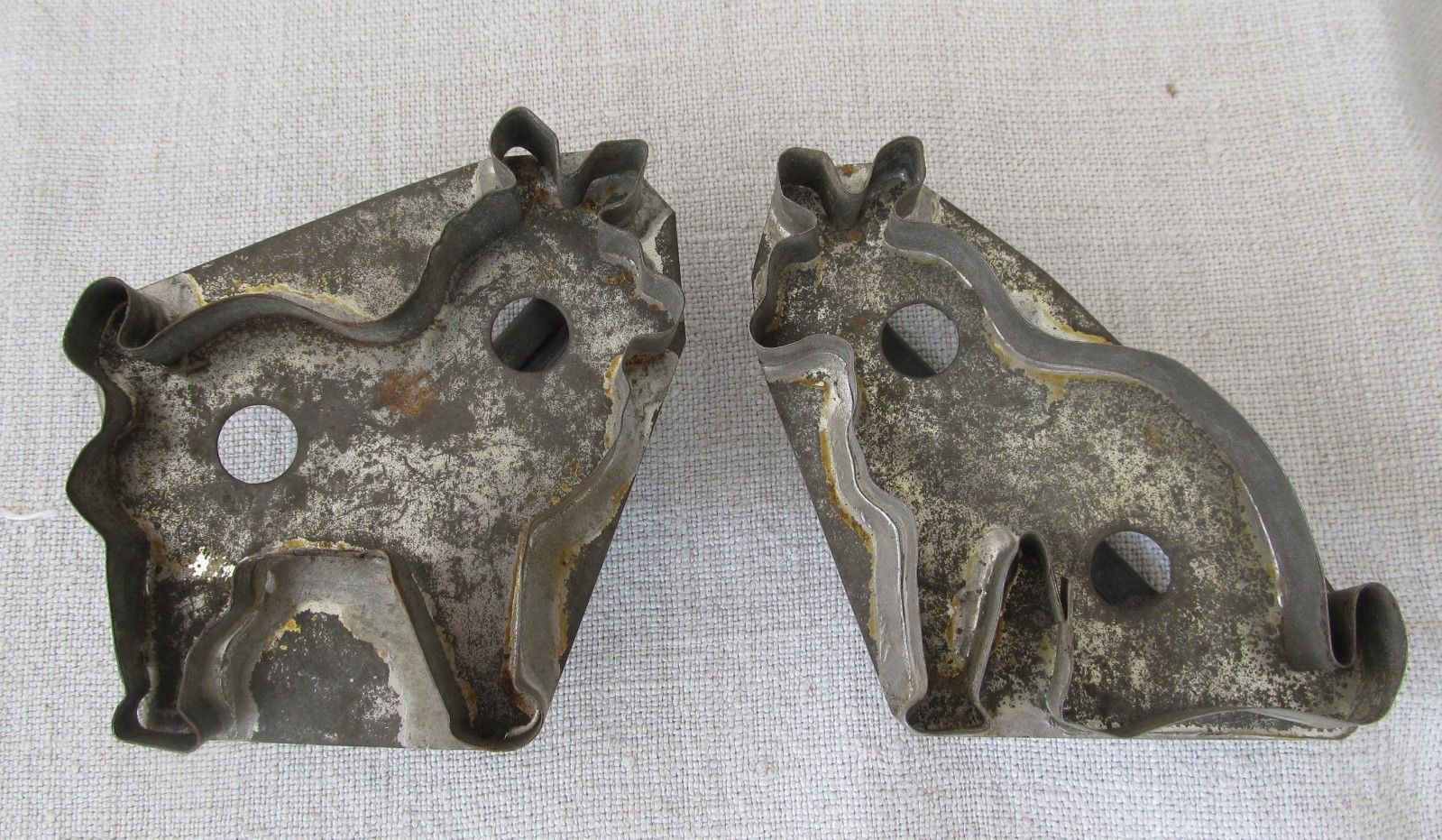 2 Ant. Primitive PA TIN COOKIE CUTTERS DOG? Standing Sitting Handles 4" Folk Art