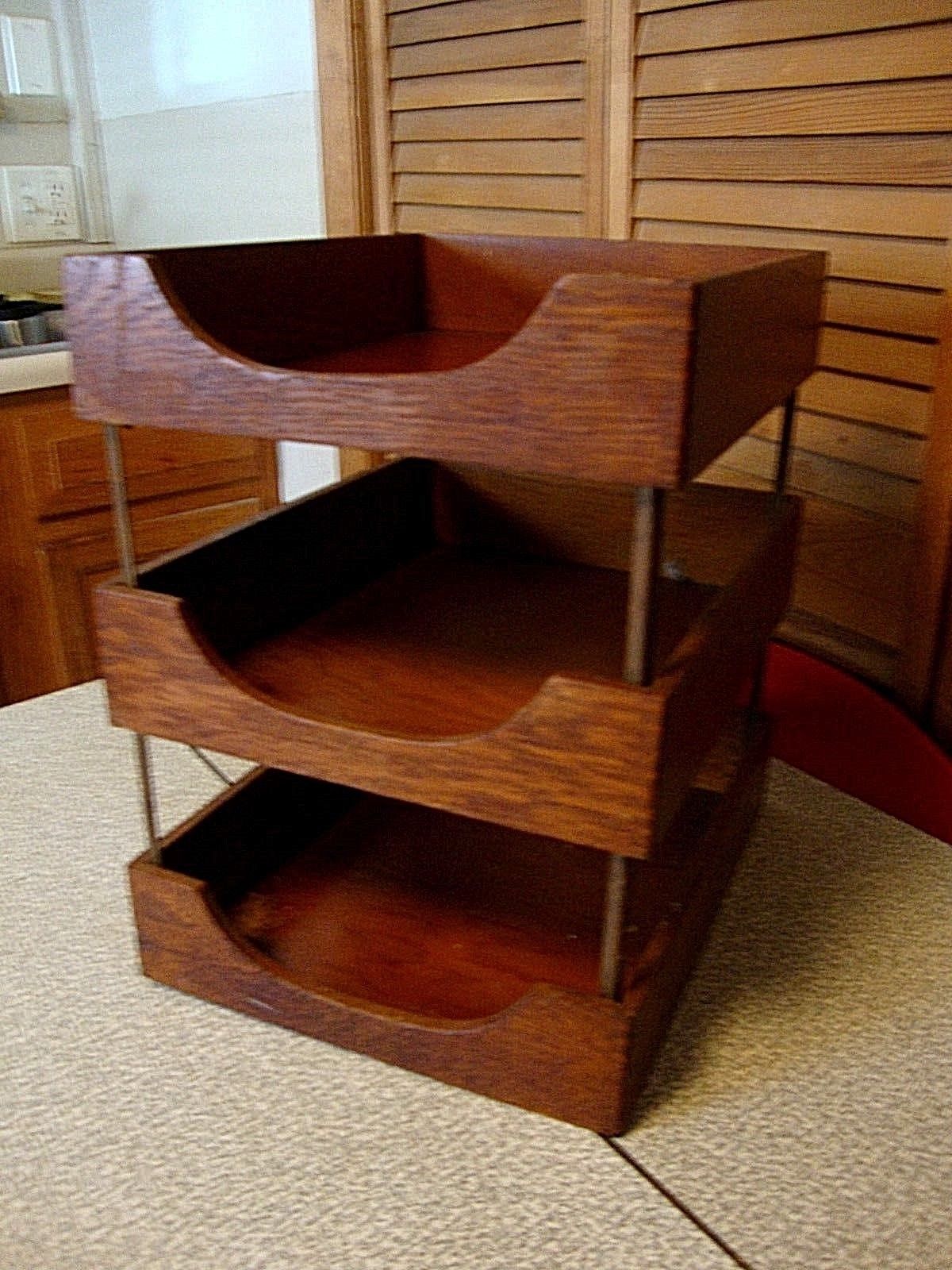 Title (ebay affiliate link): Antique Vintage Dovetail Solid Wood Triple Tier Desk Tray/Paper Box