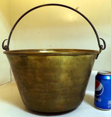 Antique Spun Brass Pail 12" Diameter Wrought Iron Swing Handle c1800s
