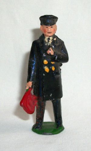 Vintage Johillco England Toy Lead Figure with Flag Soldier Railroad Conductor