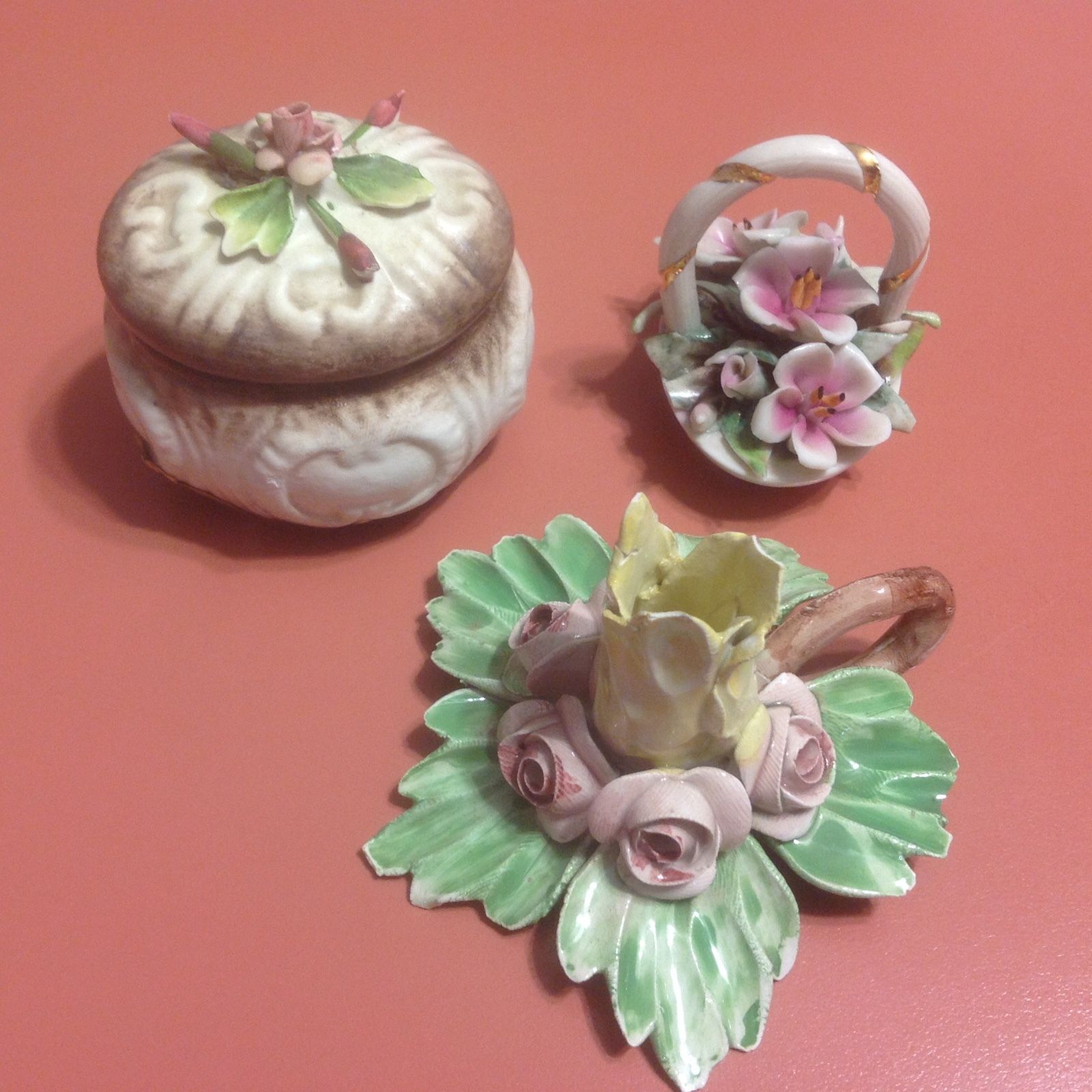 Capodimonte Porcelain 4 ps: trinket box + - collectible decorative miniature