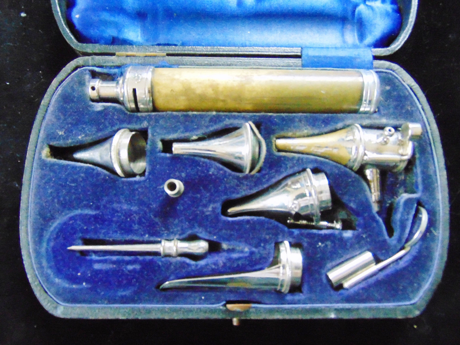 Vintage doctors otoscope Gowlland velvet lined case Millikin & Lawley military