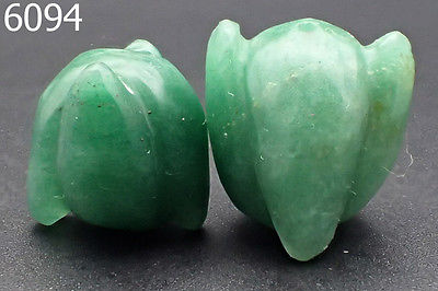 Title (ebay affiliate link): 2 Rare Mayan Olemec Hunter Green Jade Hand Carved Bead TULIP TOOTH Shape #6094