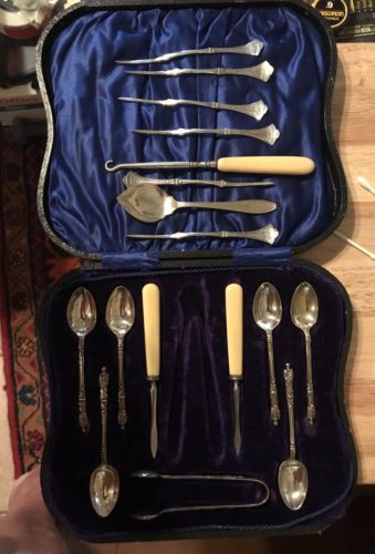 Title (ebay affiliate link): Antique Teaspoon Set Silver Plate With Monk Design + Extras