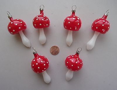 Lot of 6 Vintage BLOWN GLASS MUSHROOMS CHRISTMAS ORNAMENTS