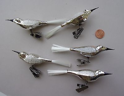 Lot of 5 CLIP-ON BLOWN GLASS SILVER SONG BIRDS CHRISTMAS ORNAMENTS