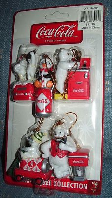 Title (ebay affiliate link): 5 COCA-COLA COKE MINI ORNAMENTS POLAR BEAR PENGUIN +NEW