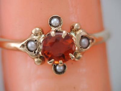 ANTIQUE VICTORIAN 10K ROSEY GOLD GARNET & SEED PEARL RING $9.99 GORGEOUS