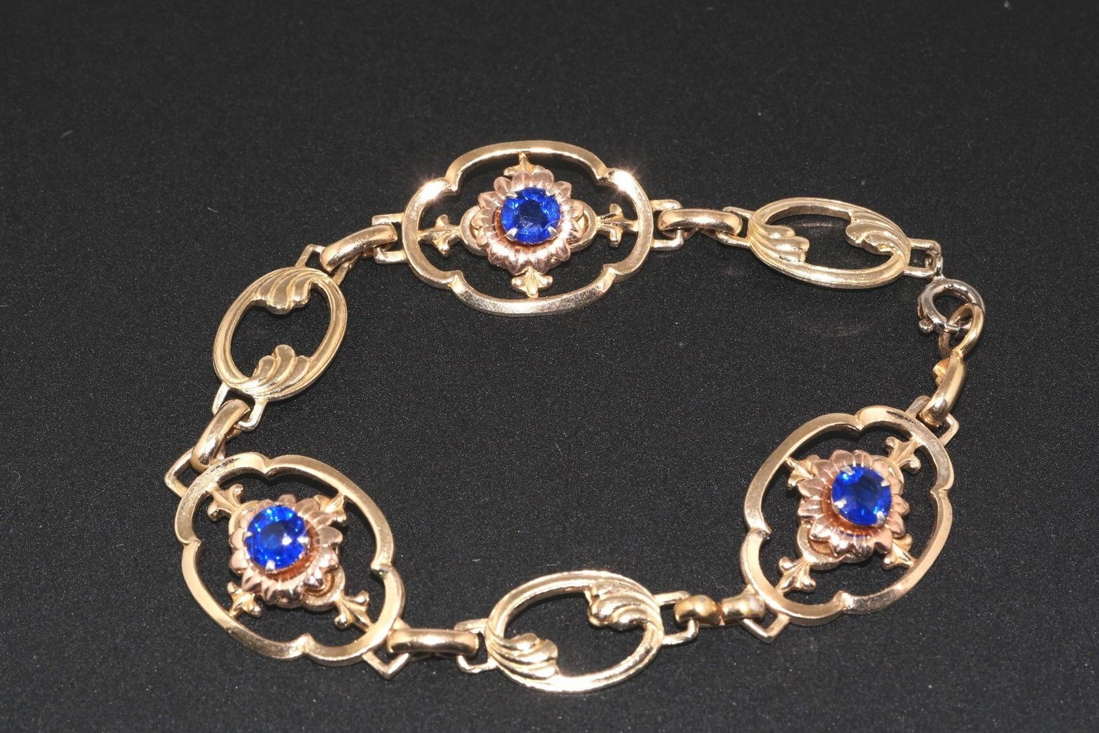 Antique Iskin 10k Gold Filled Blue Stone Bracelet