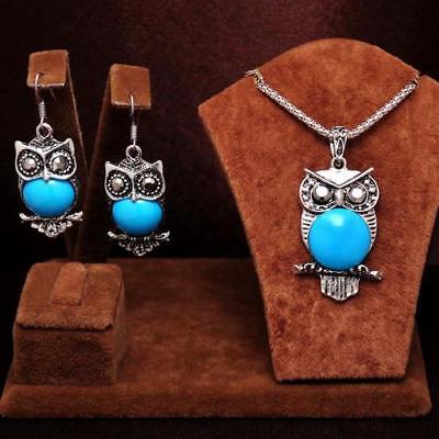 Title (ebay affiliate link): 2PCS blue owl Design antique silver Necklace eardrop Jewelry Set Women''s gift