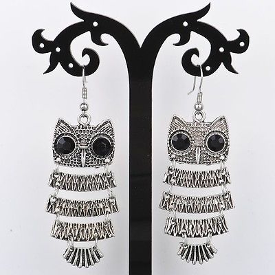 Title (ebay affiliate link): Vintage Owl Drop Earrings Antique Silver Cute Owl Dangle Earrings Women Jewelry