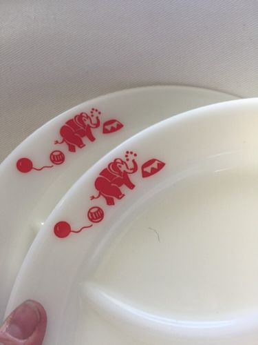 Title (ebay affiliate link): 2 Vintage Pyrex 9.5" Circus 3 Section BBQ Grill Milk glass Plate Mint Condition!