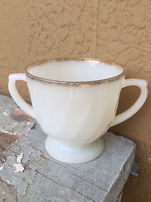 Vintage Fire-King Ovenware Milk Glass Sugar Bowl Glass With Gold Tone Trim USA