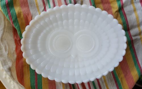 Title (ebay affiliate link): Owl - Vintage Avon White Milk Glass Scalloped Footed Soap Dish