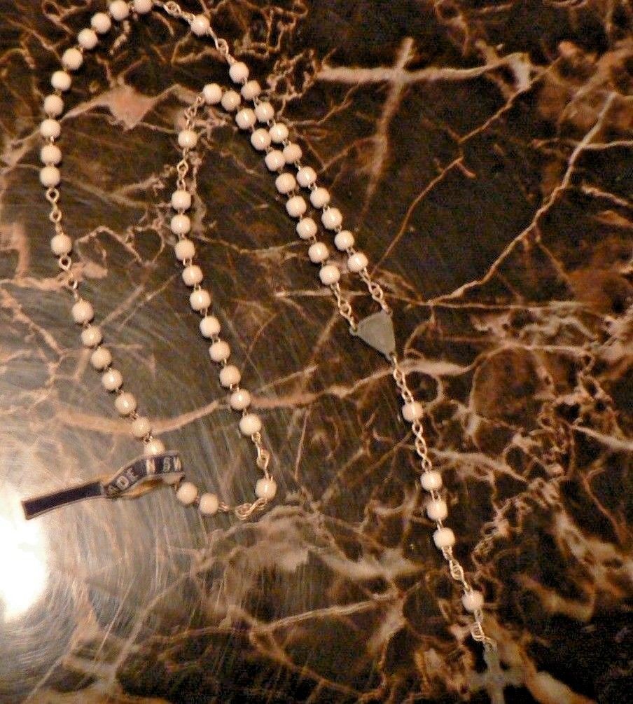 VINTAGE WHITE MILK GLASS CATHOLIC ROSARY