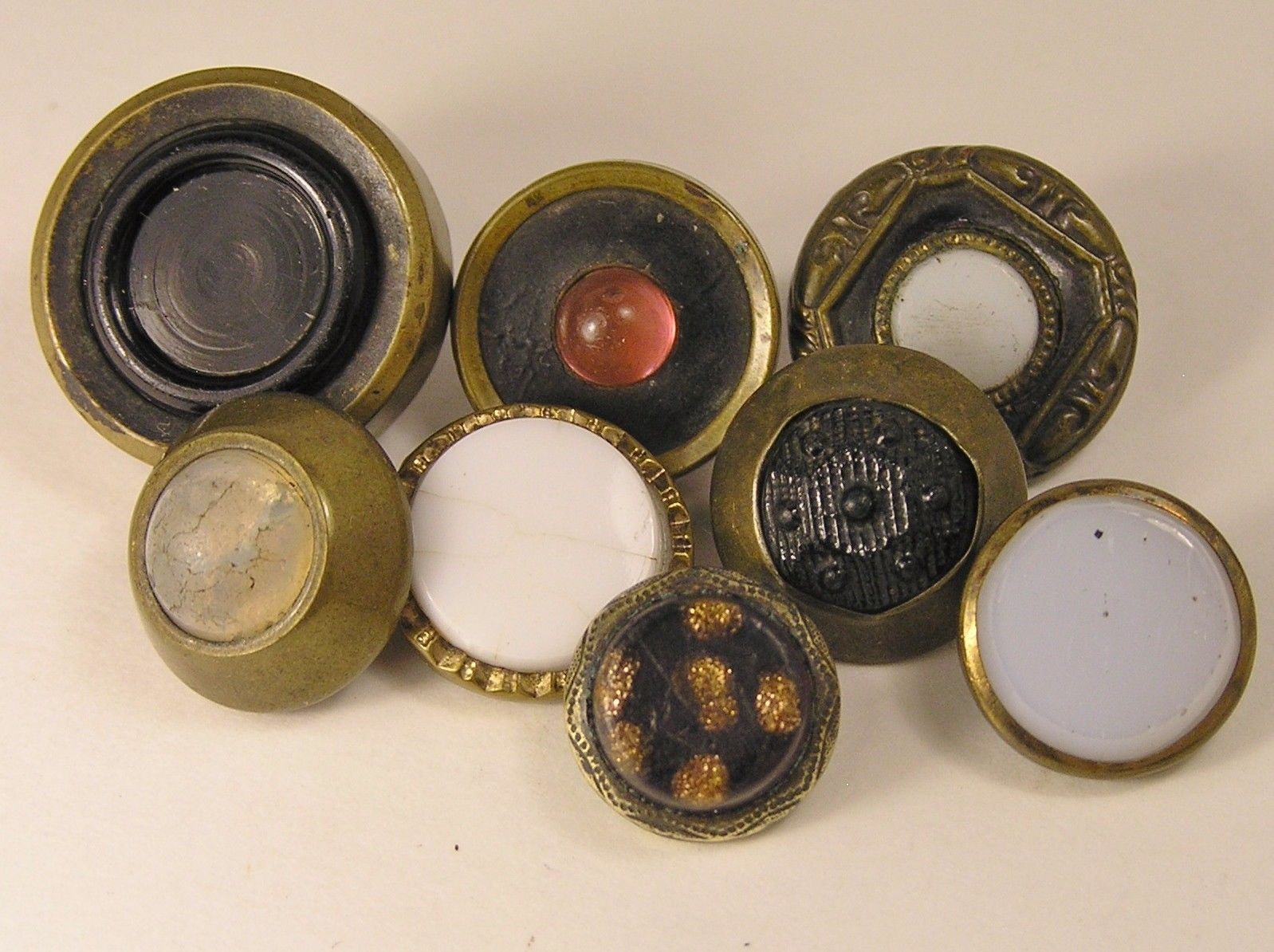 Title (ebay affiliate link): ANTIQUE VICTORIAN WAISTCOAT BUTTONS BRASS & GLASS BLACK GLASS MILK GLASS ROSE