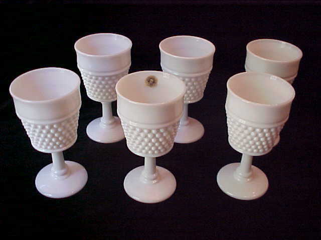 (6) WESTMORELAND HOBNAIL MILK GLASS WATER / WINE GOBLETS