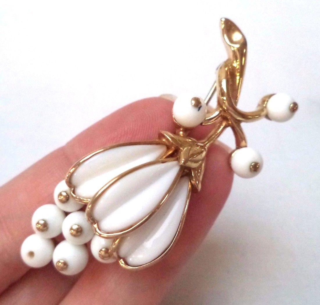 Title (ebay affiliate link): STUNNING VINTAGE ESTATE SIGNED CORO POURED MILK GLASS FLOWER 2 1/4" BROOCH 6183O