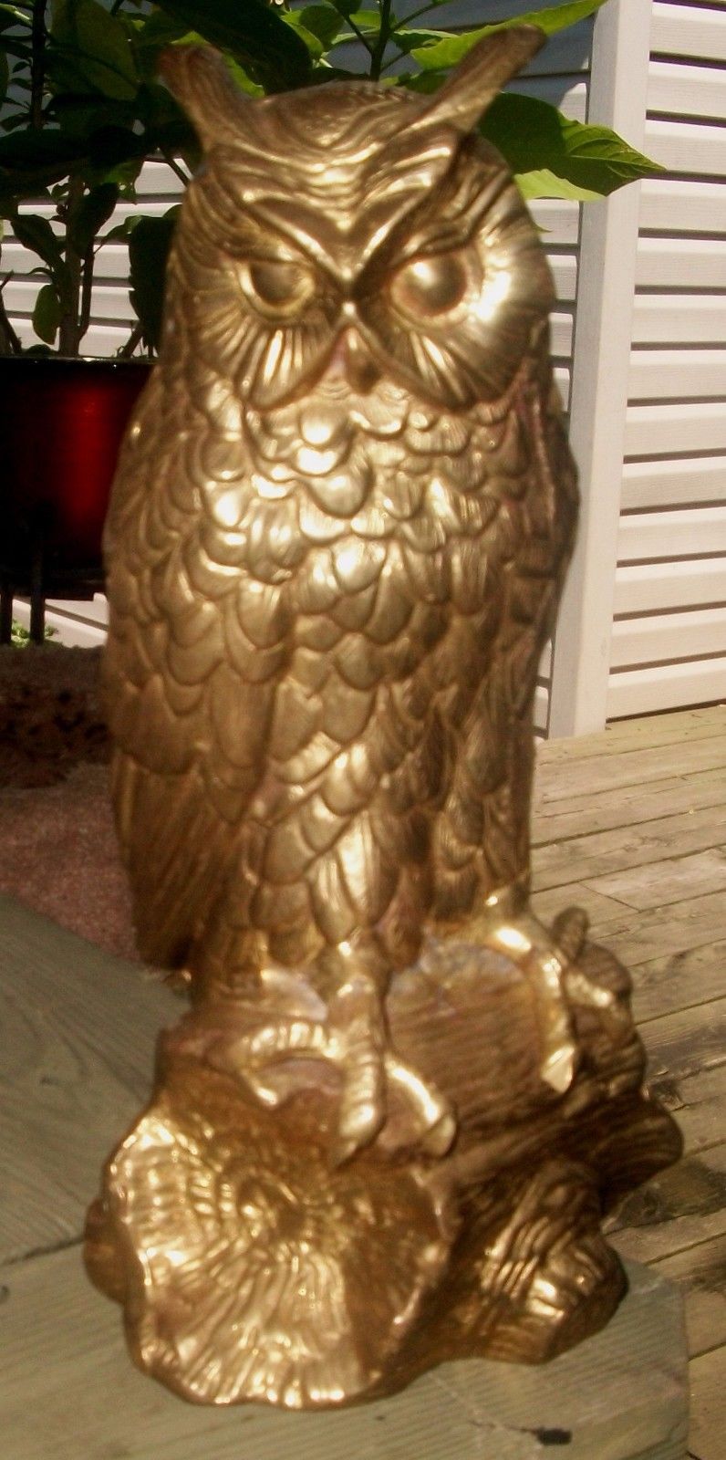 ANTIQUE FIGURAL SOLID BRASS SAGACIOUS OWL STATUE 11" TALL