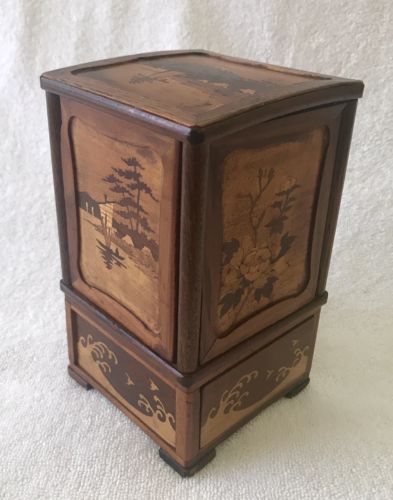 Vintage 1920''s Mt.Fuji Wood Inlay Cigarette Trinket Box