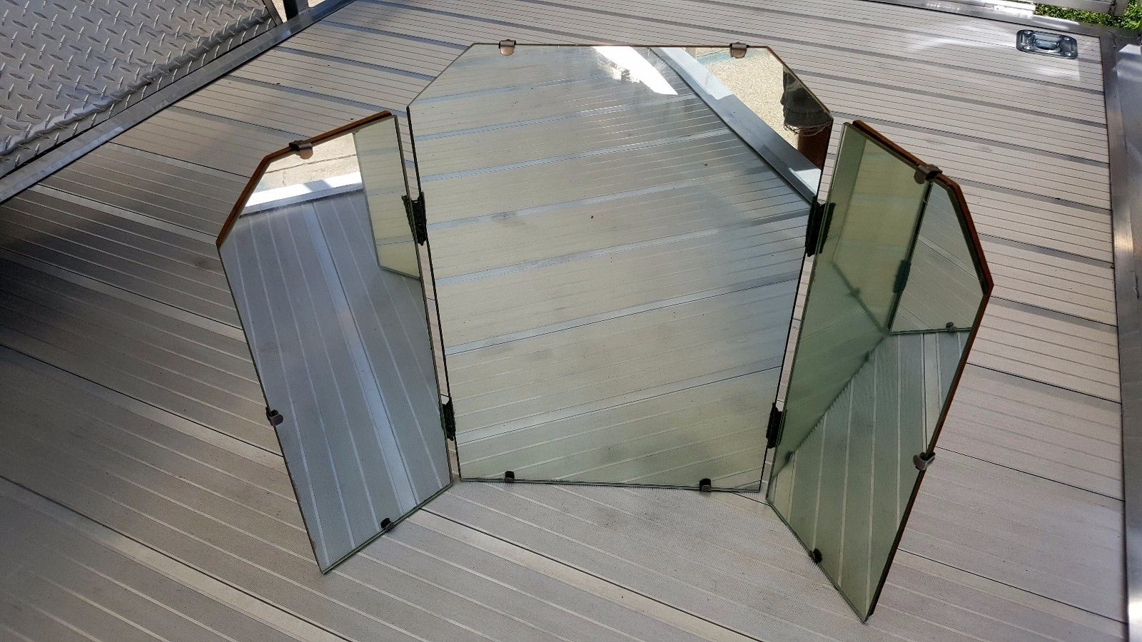 Antique Vtg Tri Fold Mirror Old 3 Panel Dresser Top Vanity Folding Hanging