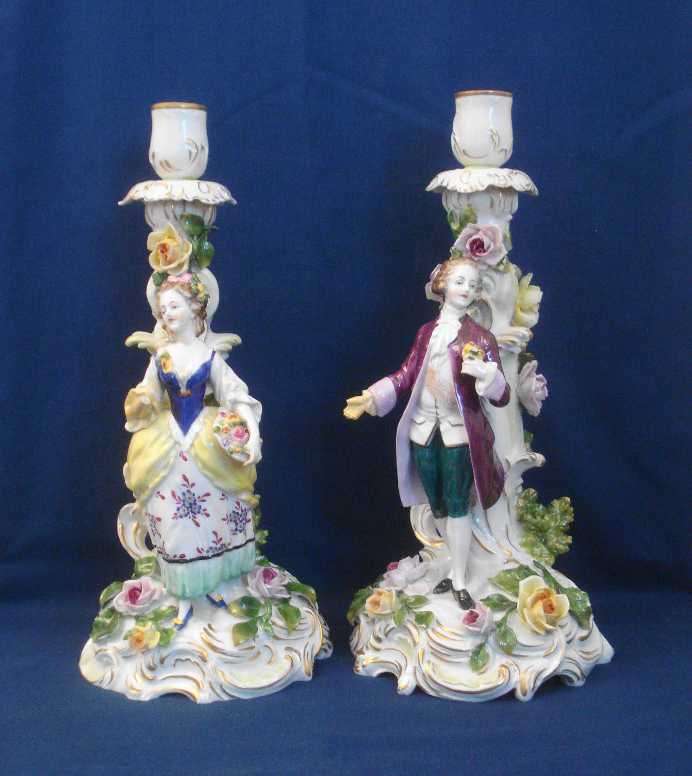 Title (ebay affiliate link): Antique Volkstedt Dresden Figural & Flowers Candlesticks Made in Germany Damaged